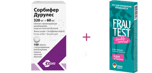 Тест на беременность, 2шт. + Средство для профилактики анемии