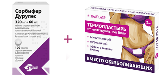 Пластырь от менструальной боли + Средство для профилактики анемии