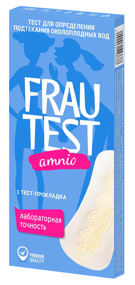 FRAUTEST amnio – Высокочувствительный и неинвазивный тест в виде мягкой и тонкой прокладки. Тест отличает околоплодные воды от мочи благодаря применению полимерной матрицы, которая возвращает измененный цвет обратно на желтый при реагировании с аммиаком.
