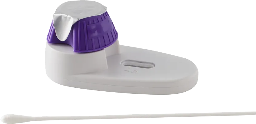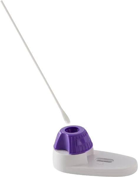 Поместите тампон в отверстие цветного колпачка и вращайте его в течение 20 сек. Достаньте тампон отжав о внутреннюю стенку цветного колпачка. Выбросите аппликатор.