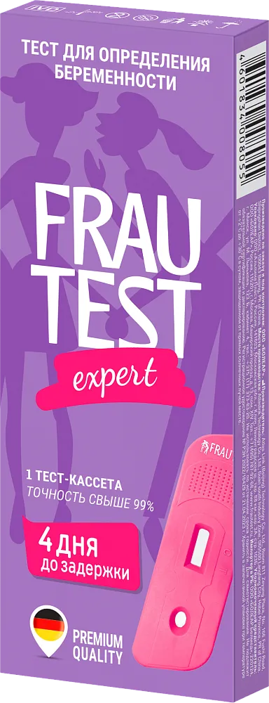 FRAUTEST Expert — Планшетный тест с пипеткой и одноразовой емкостью для сбора мочи. Оригинальная конструкция и методика проведения теста дает дополнительную гарантию точности результата. На поверхности небольшого планшета есть два окошка, мочу наносят в одно из них одноразовой пипеткой, которая входит в комплект. Во втором окошке появляется результат.